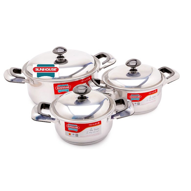 Nhà cửa & Đời sống > Dụng cụ nhà bếp > Nồi || Bộ Nồi Inox 3 Đáy Cao Cấp SUNHOUSE SH333 - Hàng Chính Hãng, Dùng Cho Mọi Loại BếpCòn hàng