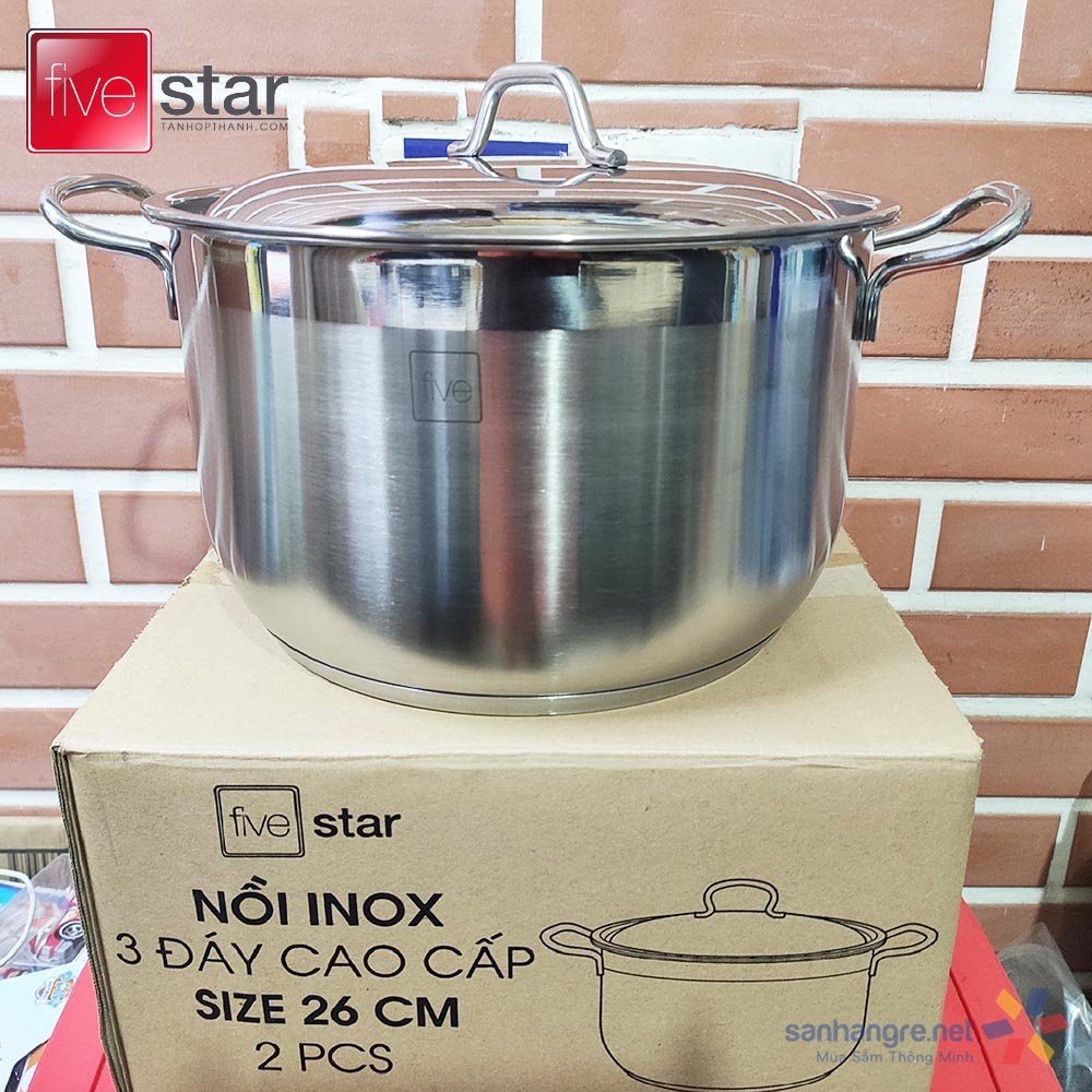 Nhà cửa & Đời sống > Dụng cụ nhà bếp > Nồi || Nồi inox 3 đáy fivestar 26 cm 8 LÍT nấu được các loại bếp, hàng chính hãng, bảo hanh 5 nămCòn hàng