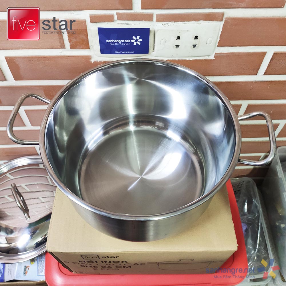 Nồi inox 3 đáy fivestar 26 cm 8 LÍT nấu được các loại bếp, hàng chính hãng, bảo hanh 5 năm
