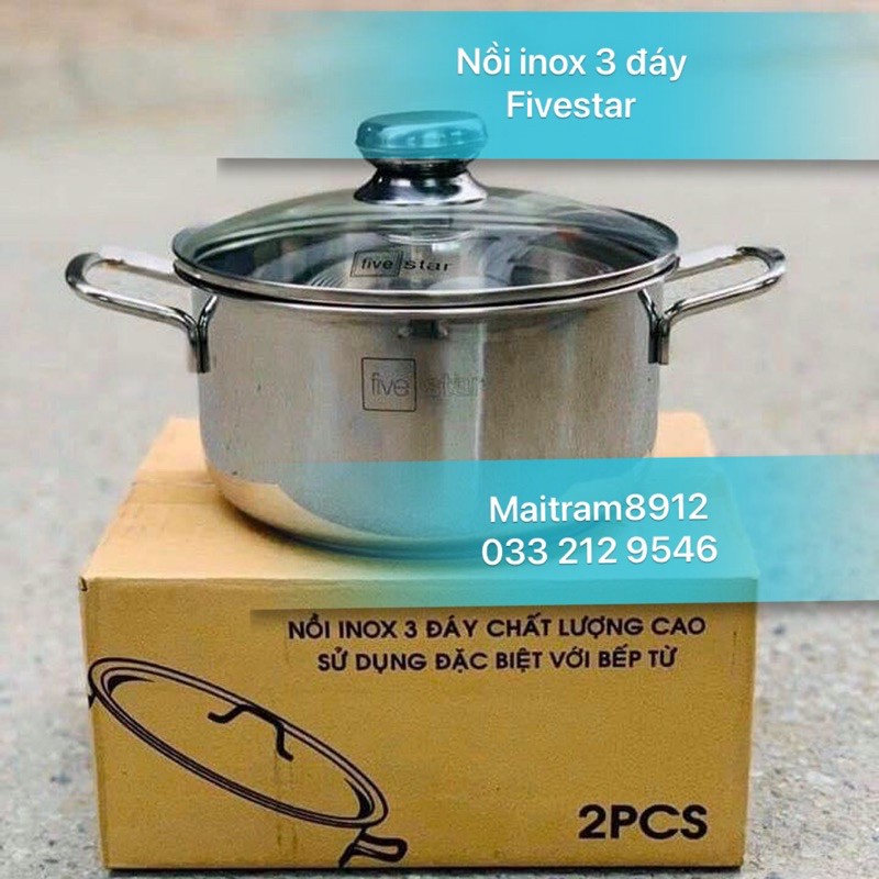 Nồi inox 3 đáy Fivestar đủ size, từ size 16, 18, 20, 24, 26, 28, 30, 32, 36 cm dùng được bếp từ