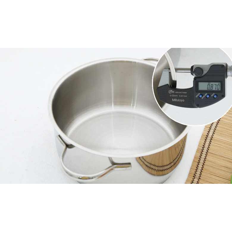 - Bộ nồi được làm từ chất liệu inox cao cấp nhập khẩu từ Hàn Quốc, bóng đẹp, có độ bền cao, độ dày 8cm theo tiêu chuẩn Quốc Tế.