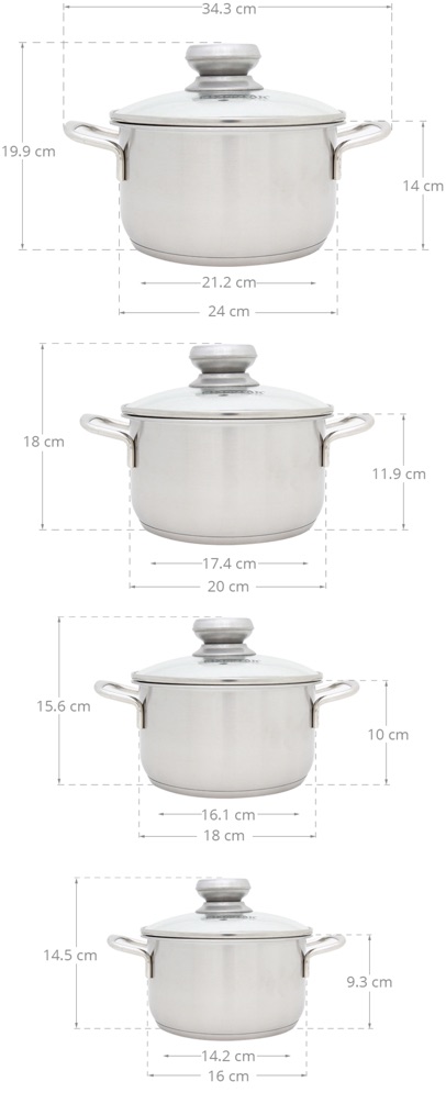THÔNG SỐ KỸ THUẬT NỒI INOX 3 ĐÁY NẮP KIẾNG 16-18-20-24CM FIVESTAR