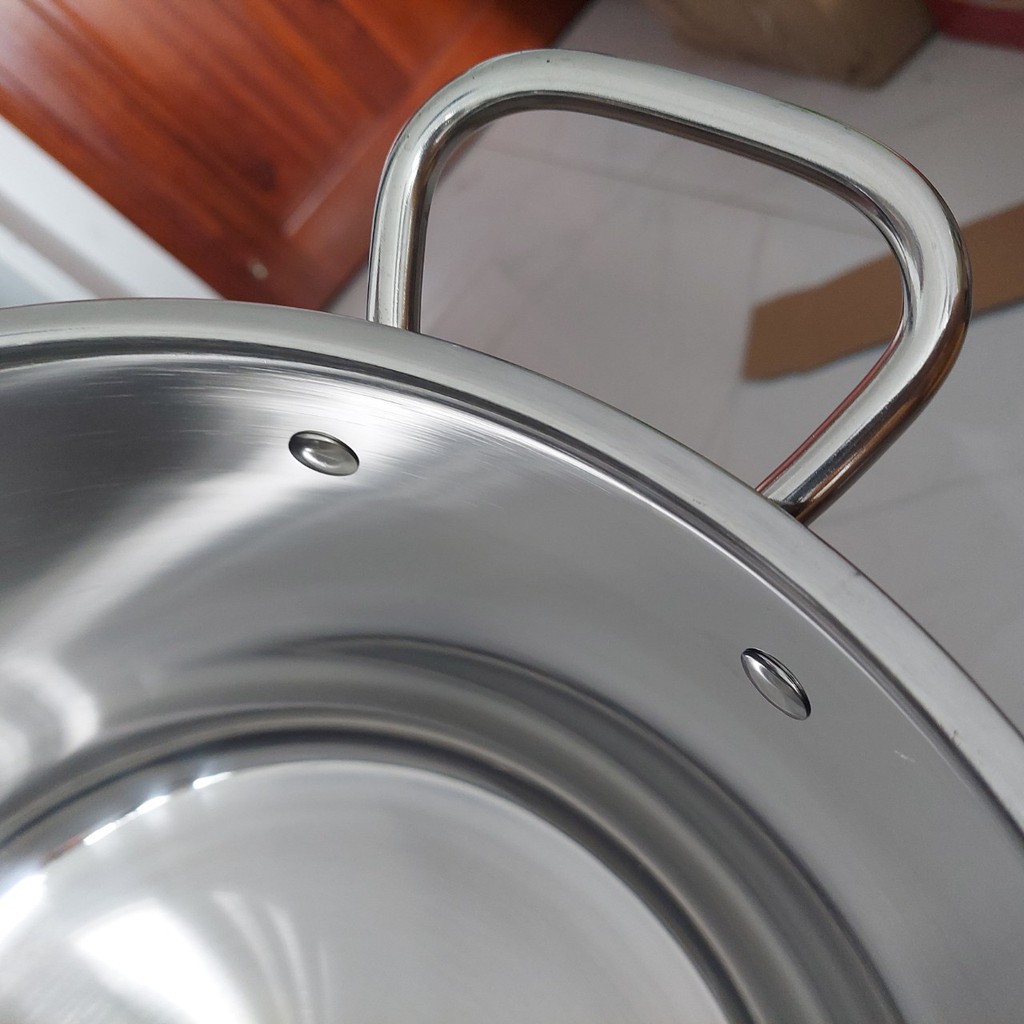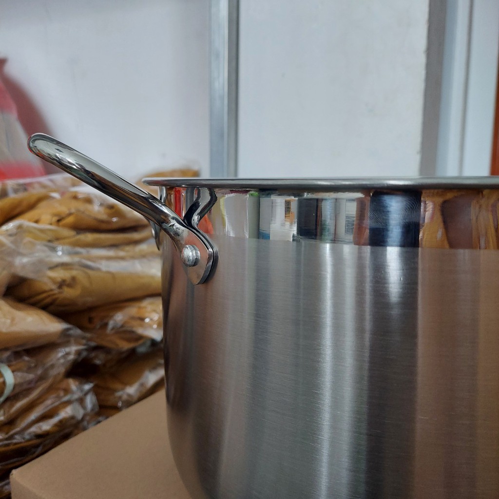 - Nồi 3 đáy rất dày, inox sáng bóng.