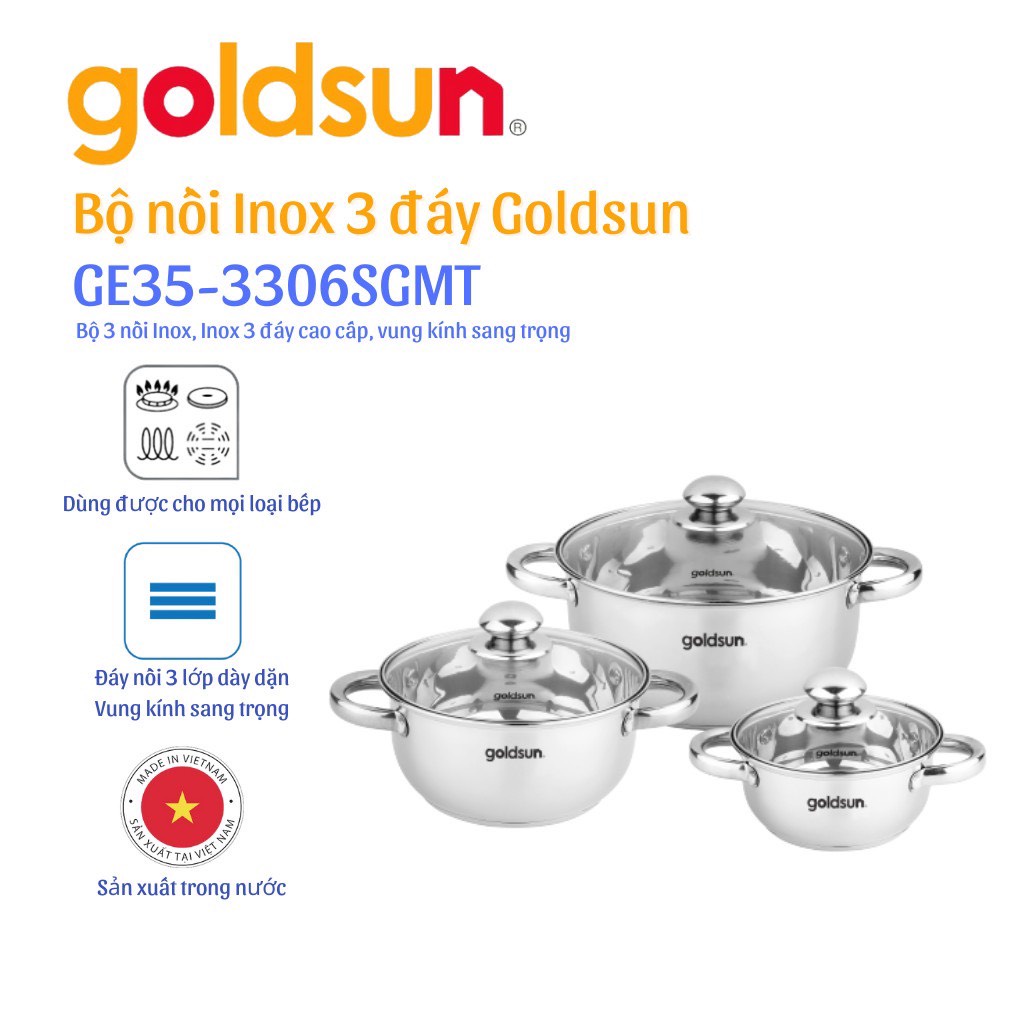 Nhà cửa & Đời sống > Dụng cụ nhà bếp > Nồi || Bộ Nồi Inox 3 Đáy Goldsun GE39-3306SG ( Dùng tất cả các loại bếp) Hàng Chính HãngCòn hàng