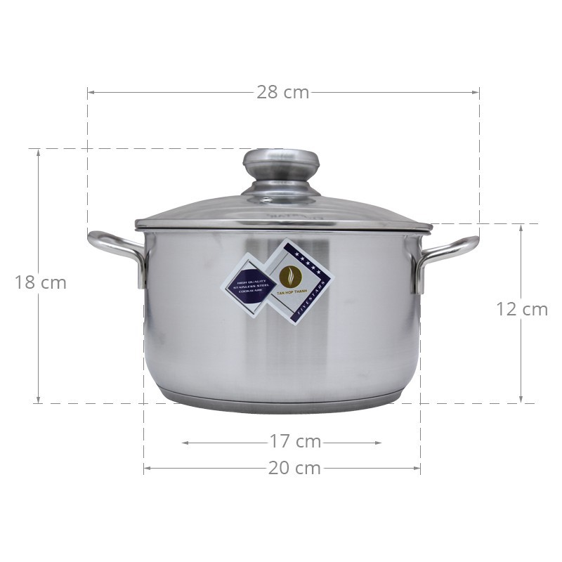 Tên sản phẩm: Nồi inox 3 đáy Fivestar 20cm nắp kính dùng được bếp từ- Xuất xứ: Việt Nam