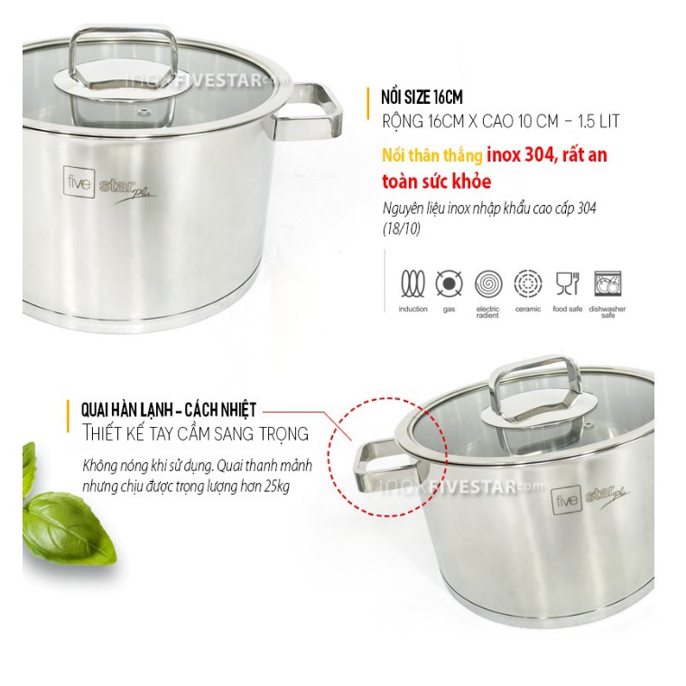 Nhà cửa & Đời sống > Dụng cụ nhà bếp > Nồi || Nồi inox 3 đáy nắp kính 16cm Fivestar N16NKB - sử dụng đc trên bếp từCòn hàng