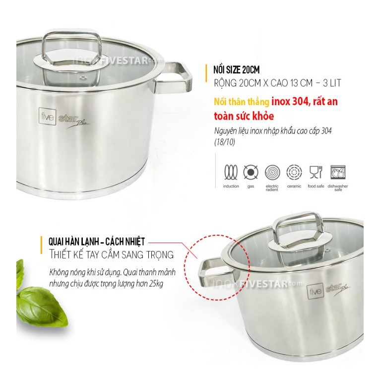 Nhà cửa & Đời sống > Dụng cụ nhà bếp > Nồi || Nồi inox 3 đáy nắp kính 20cm Fivestar N20NKB - sử dụng đc trên bếp từCòn hàng