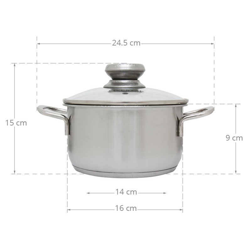 Nhà cửa & Đời sống > Dụng cụ nhà bếp > Nồi || Nồi Inox 3 đáy nắp kính cao cấp Fivestar 16cmCòn hàng