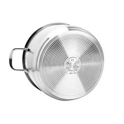Đáy 3 lớp: Nồi inox 3 đáy nắp kính Fivestar được thiết kế đáy 3 lớp gồm 2 lớp ngoài bằng Inox lớp giữa là hợp kim nhôm cho độ bền cao. Cấu tạo đáy 3 lớp còn giúp thu nhiệt nhanh, nhiệt độ toả đều giúp tránh tính trạng cháy khét thực phẩm trong quá trình nấu và không gây hiện tượng cong phồng đáy khi gặp nhiệt độ cao.