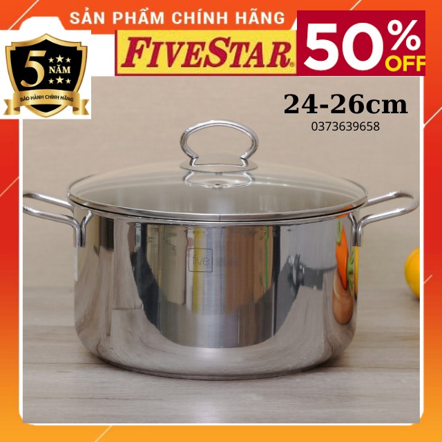 Nồi Inox 3 đáy nắp kính Fivestar đường kính 24-26cm dùng bếp từ -(nồi 26 vung inox) Hàng chính hãng bảo hành 5 năm