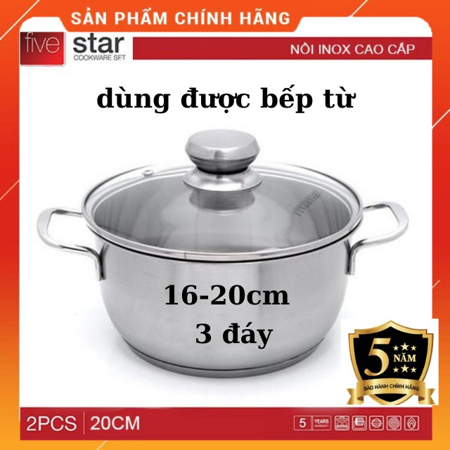 Nồi Inox 3 Đáy Nắp Kính Fivestar Đường Kính 16-20cm- Dùng Được Bếp Từ - Hàng Chính Hãng Bảo Hành 5 Năm-- nồi được làm từ chất liệu inox cao cấp nhập khẩu từ Hàn Quốc, bóng đẹp, có độ bền cao, độ dày 8cm theo tiêu chuẩn Quốc Tế.