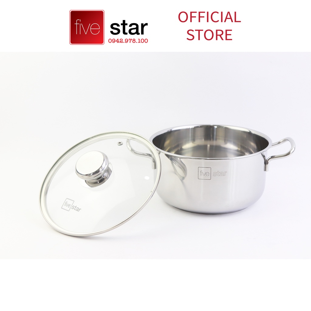 Nhà cửa & Đời sống > Dụng cụ nhà bếp > Nồi || Nồi inox 3 đáy sandwich inox 430 cao cấp Fivestar Standard bếp từ nắp kính (16cm /18cm / 20cm / 24cm)Còn hàng