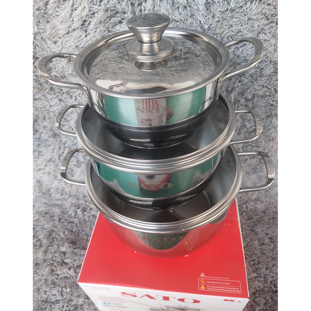Nhà cửa & Đời sống > Dụng cụ nhà bếp > Nồi || Bộ nồi inox 3 đáy SATO ST-BI31. Chất liệu inox 430 Bền Tốt . Bảo hành 12 tháng.Còn hàng