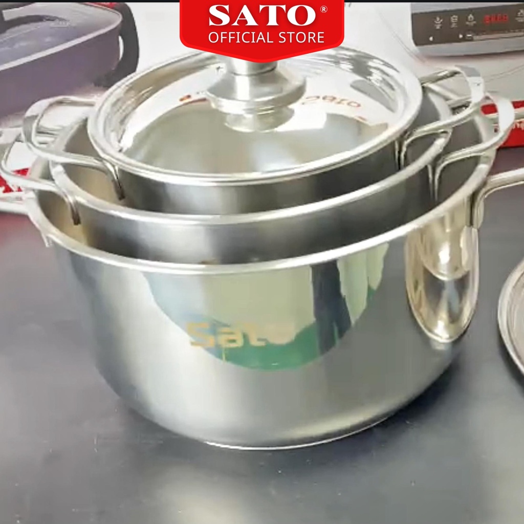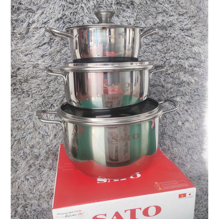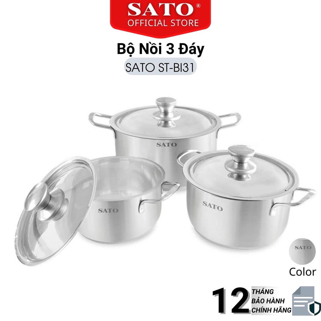 Bộ nồi inox 3 đáy SATO ST-BI322 siêu bền sử dụng cho tất cả các loại bếp - bảo hành 12 tháng