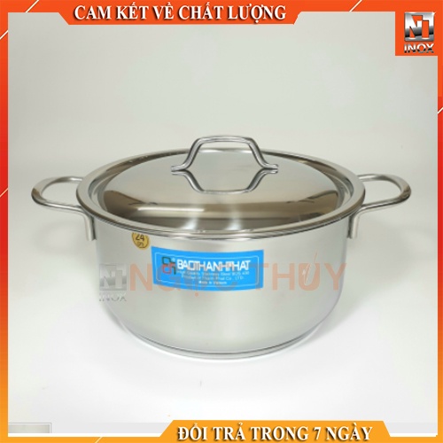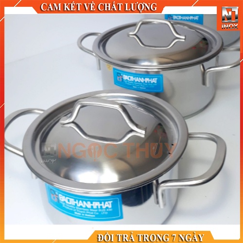 - Chất liệu inox không gỉ cao cấp dày giúp sản phẩm cứng cáp cầm nặng tay hơn, bền đẹp và sáng bóng với thời gian cũng như dễ dàng vệ sinh sau khi sử dụng. Sản phẩm bộ nồi Inox 3 đáy BAOTHANHPHAT kiểu dáng bắt mắt, thanh nhã phong cách rất Châu Âu với quai cầm giảm nóng, đáy nồi 3 lớp kiểu Sanwitch Base chứa một lớp nhôm ở giữa tạo cho nồi tỏa nhiệt đều, thực phẩm không bị cháy cục bộ ở đáy nồi.