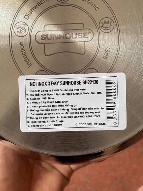 Nhà cửa & Đời sống > Dụng cụ nhà bếp > Nồi || NỒI INOX 3 ĐÁY SUNHOUSE 20cm (20 cm) - Hàng khuyến mãi của sữa FrisoCòn hàng