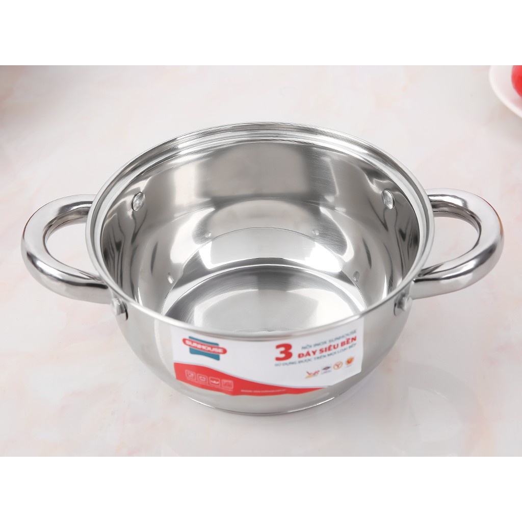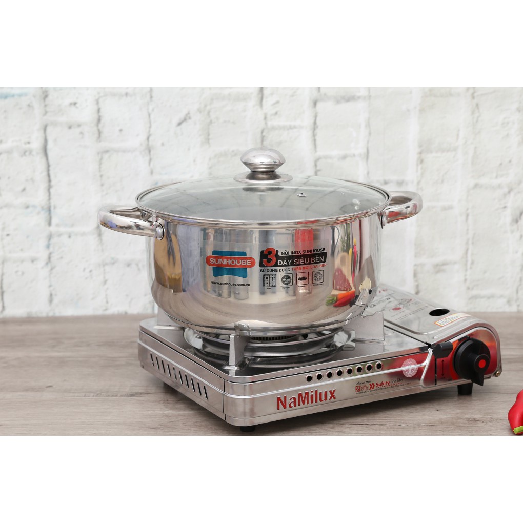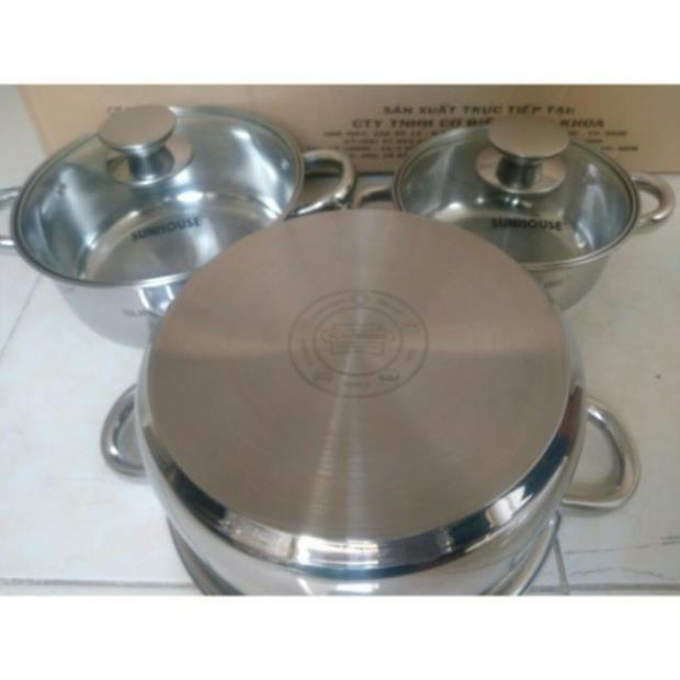 NỒI INOX 3 ĐÁY SUNHOUSE ĐỦ SIZE 16/20/24/26CM