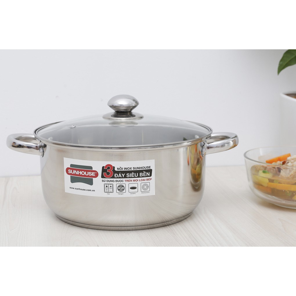 Nhà cửa & Đời sống > Dụng cụ nhà bếp > Nồi || NỒI INOX 3 ĐÁY SUNHOUSE ĐỦ SIZE 16/20/24/26CMCòn hàng