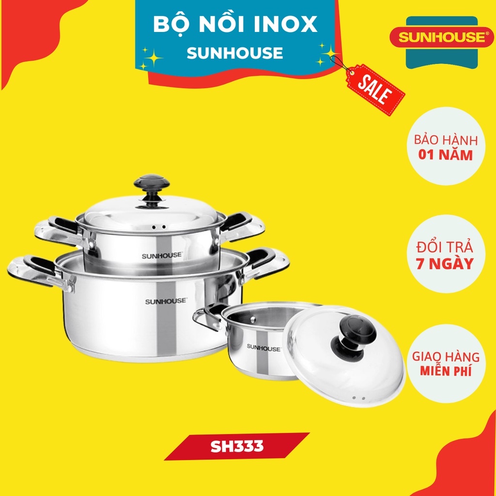✅ Bộ nồi inox 3 đáy SUNHOUSE SH333 là một trong những sản phẩm chất lượng từ SUNHOUSE.