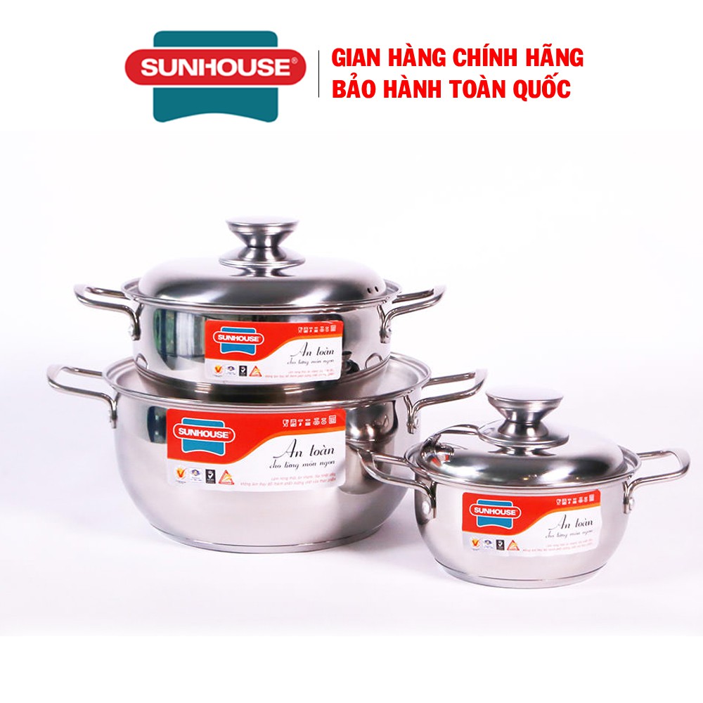 Nhà cửa & Đời sống > Dụng cụ nhà bếp > Nồi || Bộ nồi inox 3 đáy Sunhouse SH335, Chất liệu inox cao cấp, Vung inox bền đẹpCòn hàng