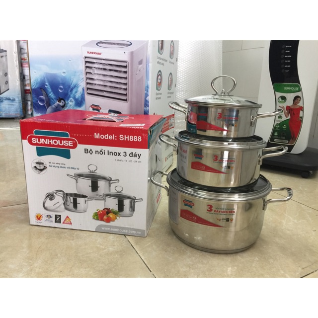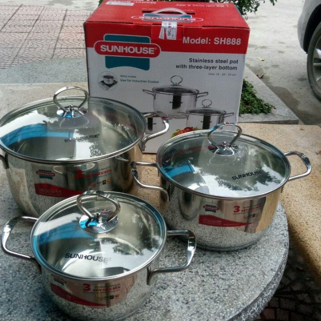 Nhà cửa & Đời sống > Dụng cụ nhà bếp > Nồi || Bộ nồi inox 3 đáy SUNHOUSE SH888 (Dùng cho bếp từ và mọi loại bếp)Còn hàng
