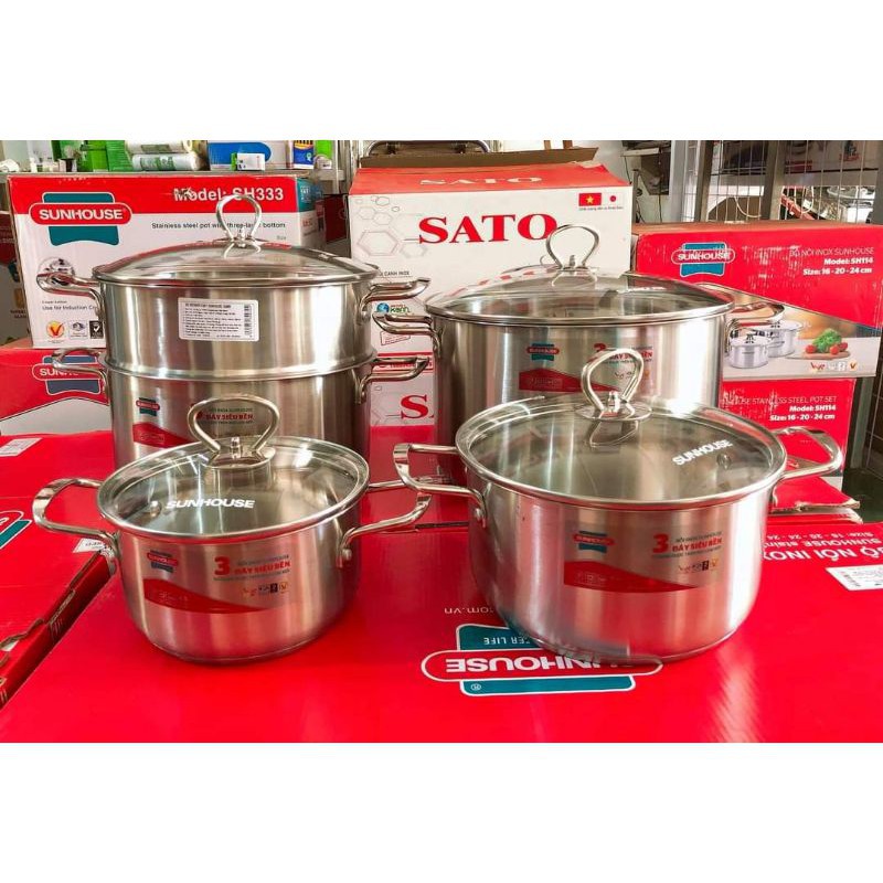 Nhà cửa & Đời sống > Dụng cụ nhà bếp > Nồi || Bộ Nồi Inox 3 Đáy SUNHOUSE SH895 Cao Cấp Kèm Xửng Hấp, Sử Dụng Trên Mọi Loại BếpCòn hàng