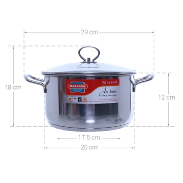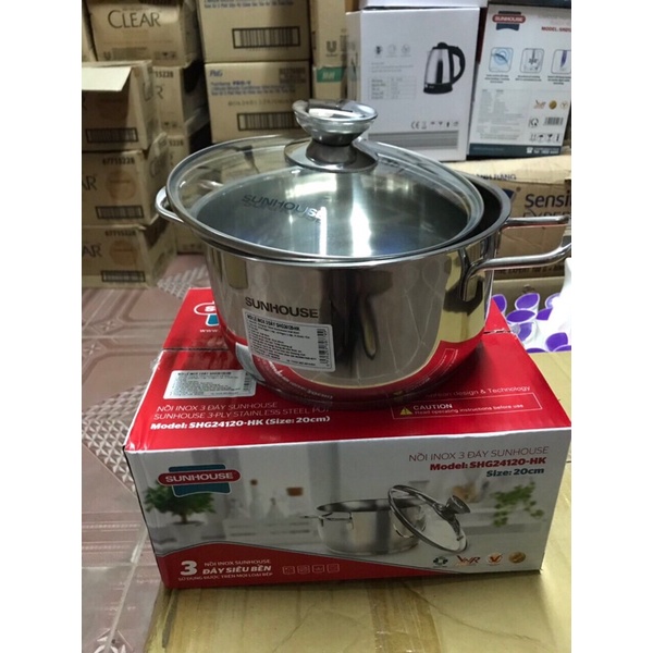 Nồi inox 3 đáy sunhouse size 20cm SHG24120-HK