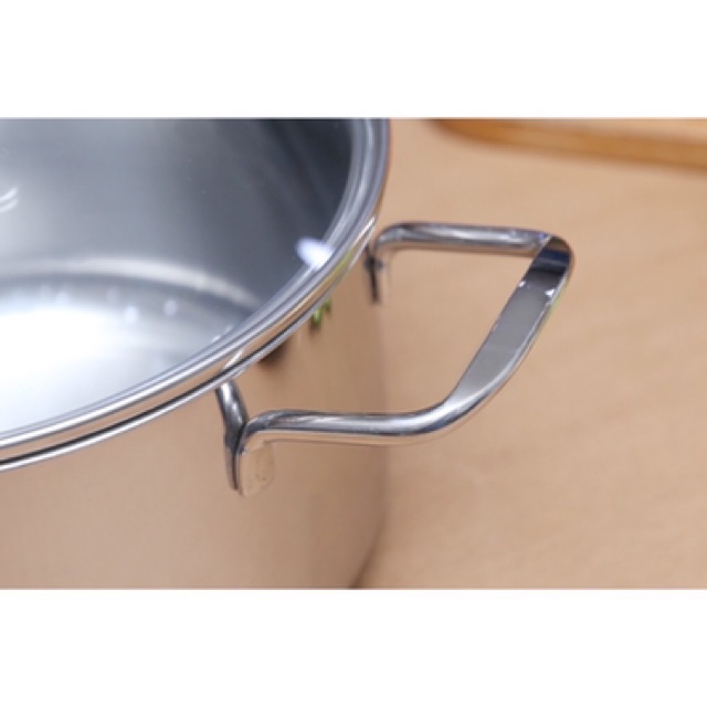 • Nồi inox 3 đáy chất liệu inox 430 sáng đẹp, ít bị oxy hóa, nấu ăn an toàn.