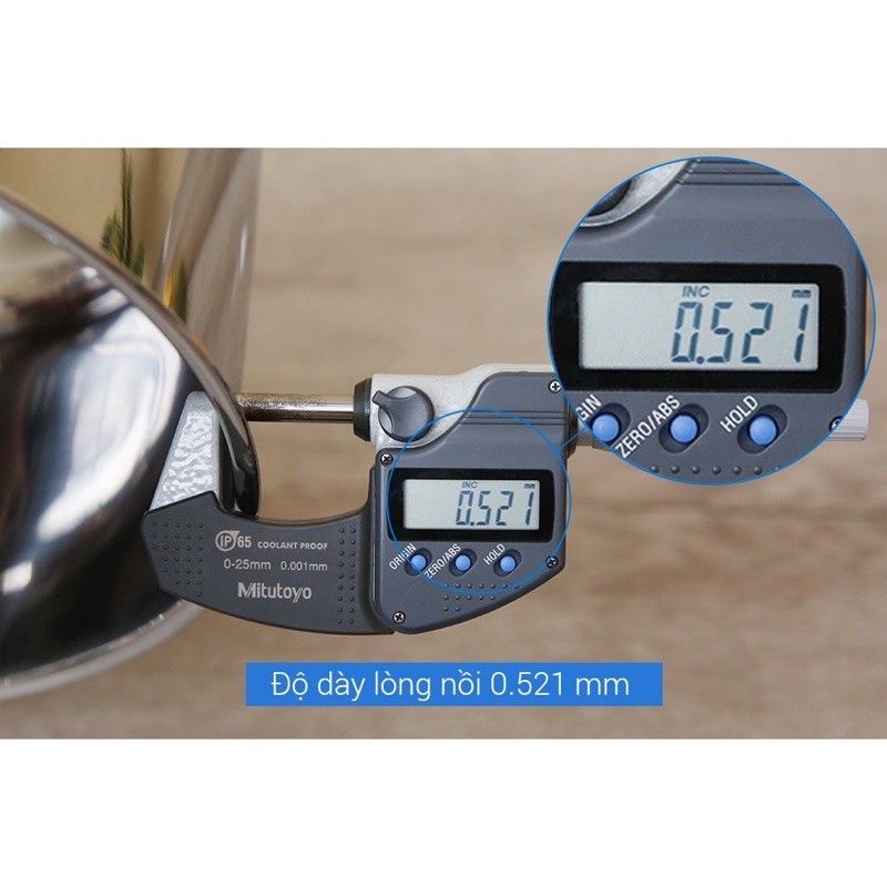 - Nồi 3 đáy rất dày, inox sáng bóng.