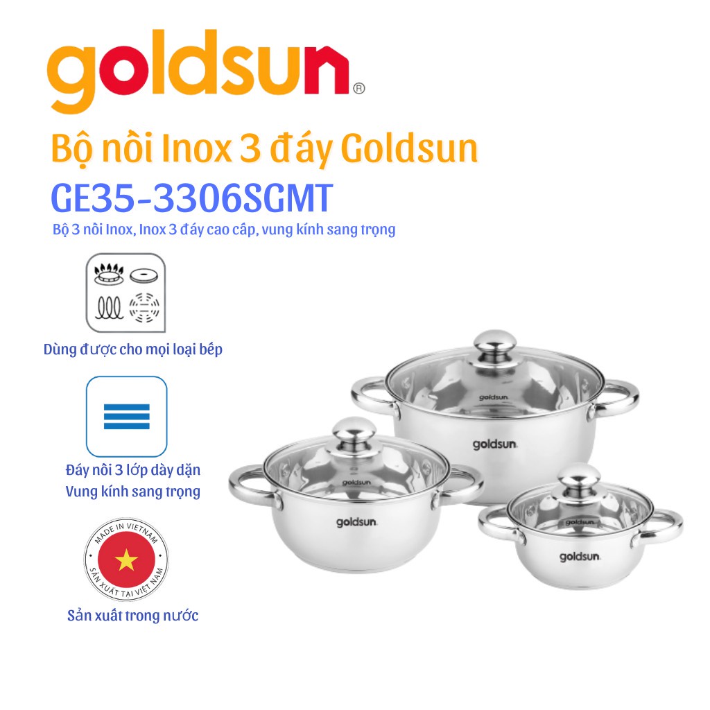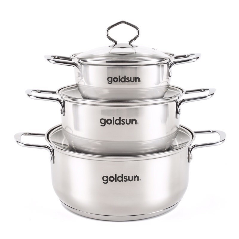 #bộnồi3đáygoldsun #bộnồiinox3đáygoldsun #nồi3đáyinox #nồibếptừ #nồibếphồngngoại