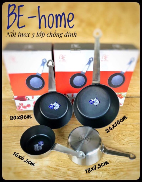 Nồi inox 3 lớp chống dính BEHOME có thể dùng nấu cháo,nấu bột ,chiên rán ngâp dầu và sản phẩm được sử dụng trên mọi chất liệu bếp kể cả bếp từ.