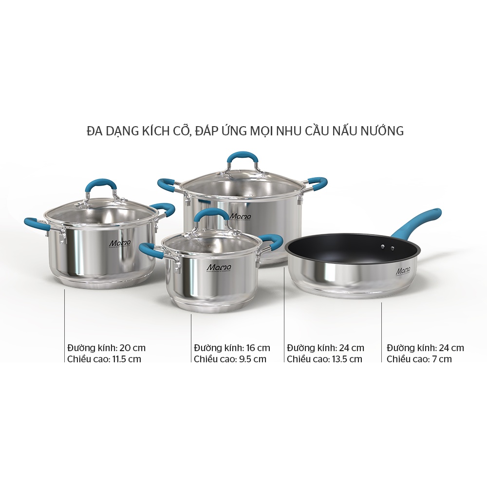 Kích thước Đường kính lòng nồi: 16 – 20 – 24 (nồi&chảo) cm