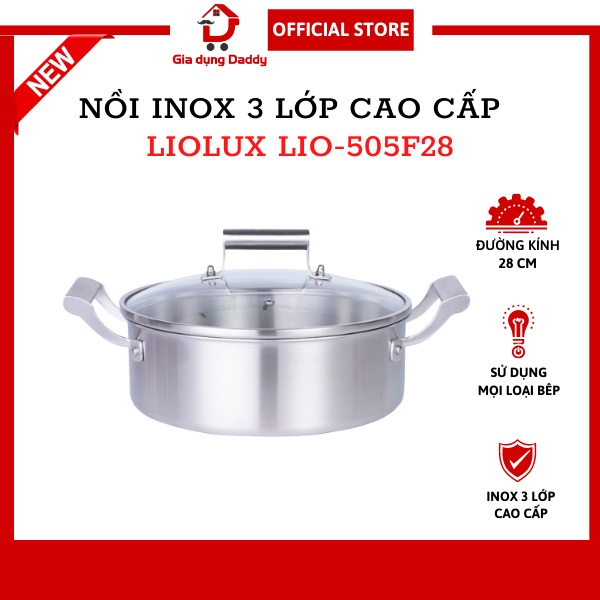 Nhà cửa & Đời sống > Dụng cụ nhà bếp > Nồi || Nồi Inox 304 Bếp Từ Liolux LIO-505F28 Đường kính 28cm, Nồi Inox 3 lớp sử dụng bếp hồng ngoại, bếp ga Bảo hành 12 thángCòn hàng