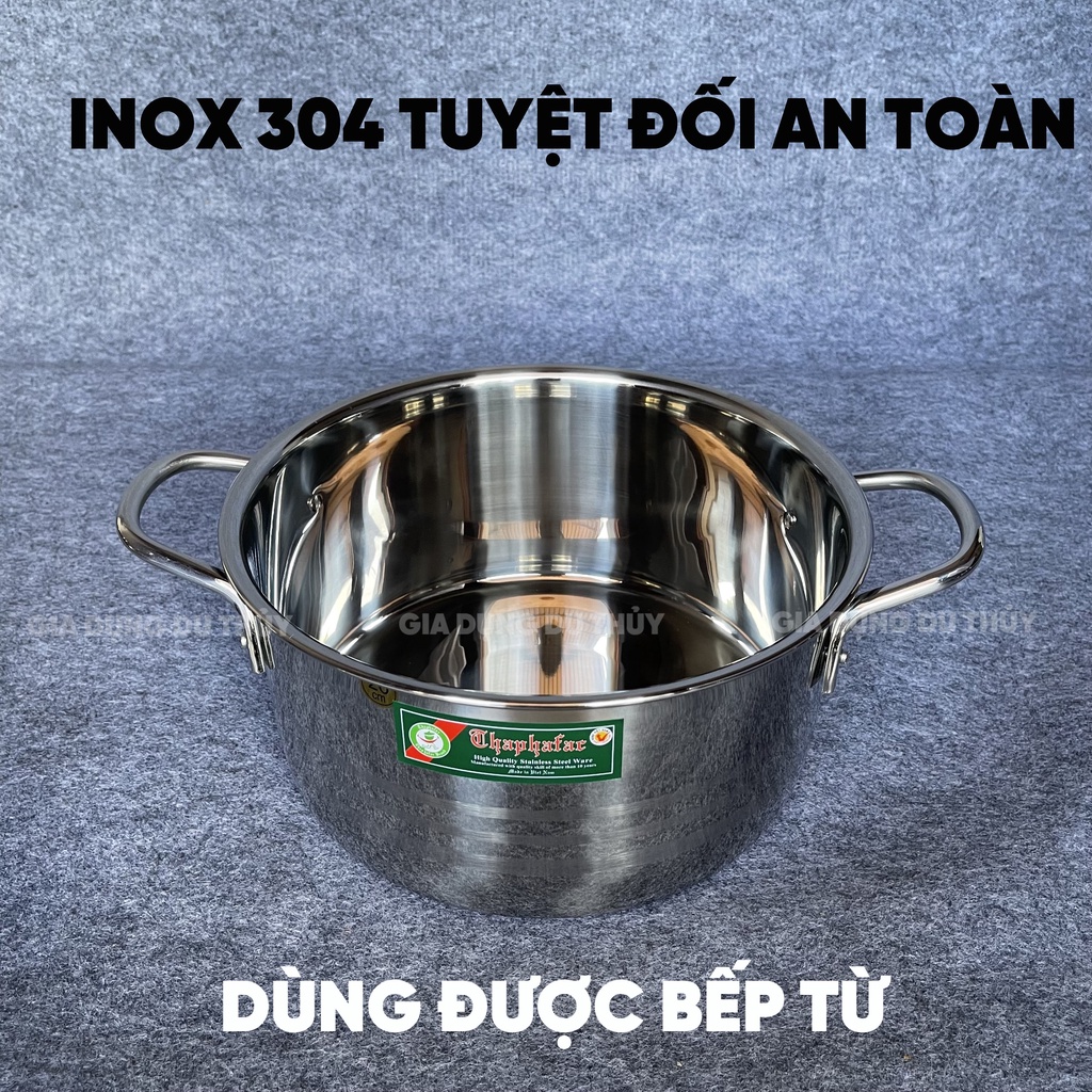 Nồi inox 304 cao cấp 3 đáy Thaphafac 16-18-20cm, có quai cách nhiệt không bỏng, dùng được bếp từ thiết kế sang trọng