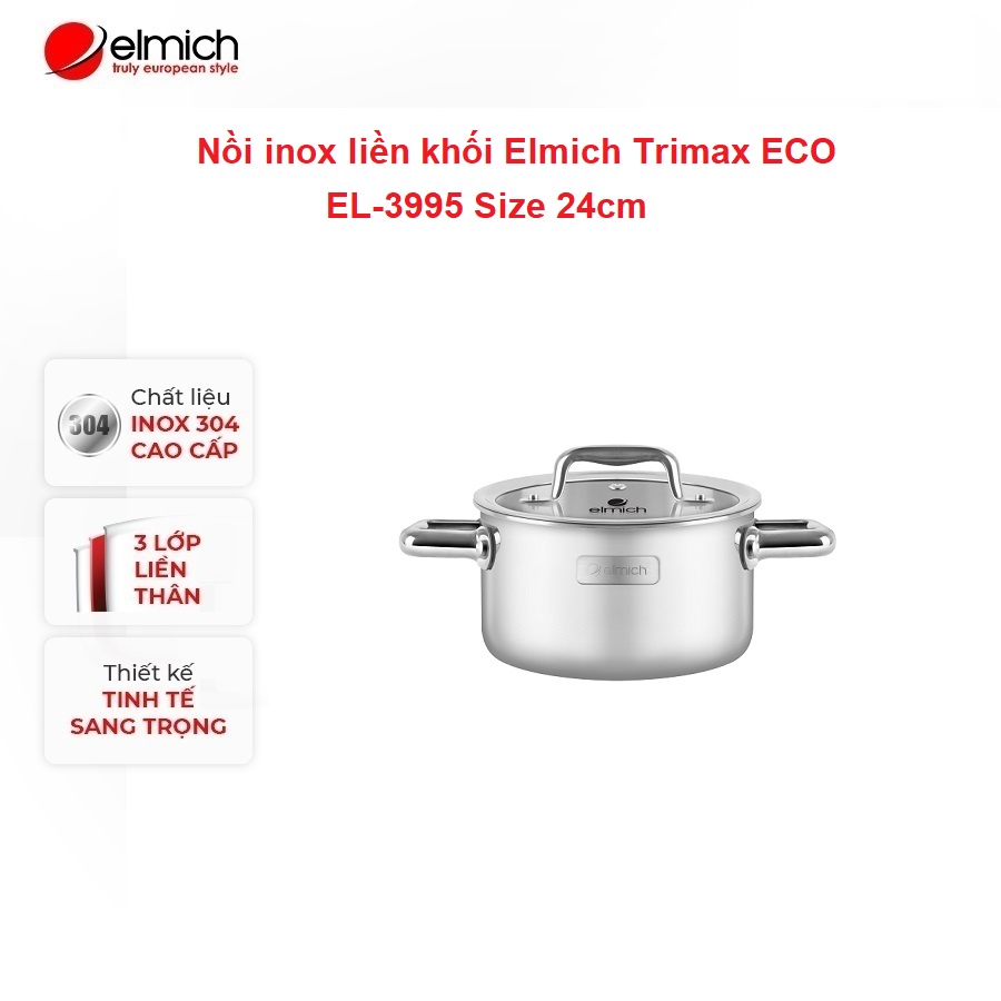 Nhà cửa & Đời sống > Dụng cụ nhà bếp > Nồi || Nồi Inox 304 cao cấp 3 đáy liền khối Elmich Trimax Eco EL-3995 Size 24cmCòn hàng