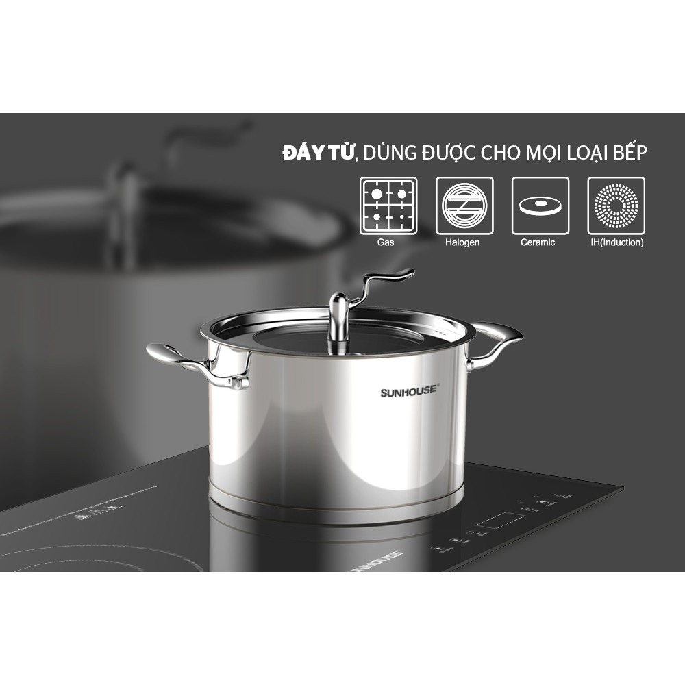 Bộ nồi inox 304 cao cấp 5 đáy SUNHOUSE SHG2503MSA vung kính đáy từ