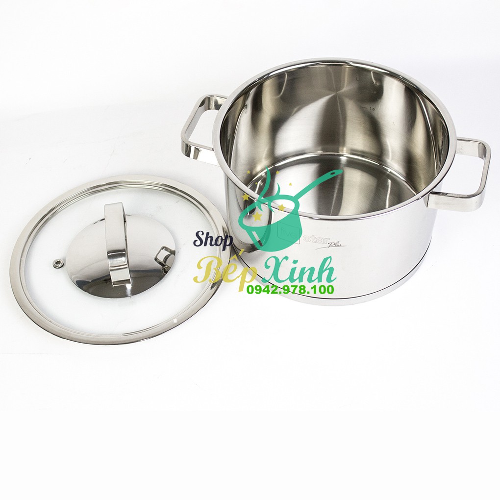 #nồiinoxNồi thân cao #3đáy inox 304 Fivestar Plus bếp từ quai vuông nắp kính ( 16cm /18cm / 20cm / 24cm )