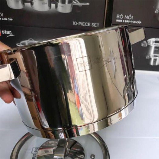 Nhà cửa & Đời sống > Dụng cụ nhà bếp > Nồi || Nồi inox 304 cao cấp Fivestar 3 đáy quai vuông nắp kính,dùng được bếp từ (16cm / 18cm / 20cm / 24cm )Còn hàng