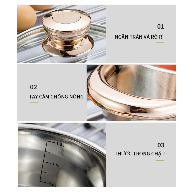 Bộ Nồi Inox 304 Cao Cấp Yimeitai, Bộ Nồi Inox Đức Gồm 3 Món - Đáy 3 Lớp Nguyên Khối--------------------------------------------------------------------------------------------