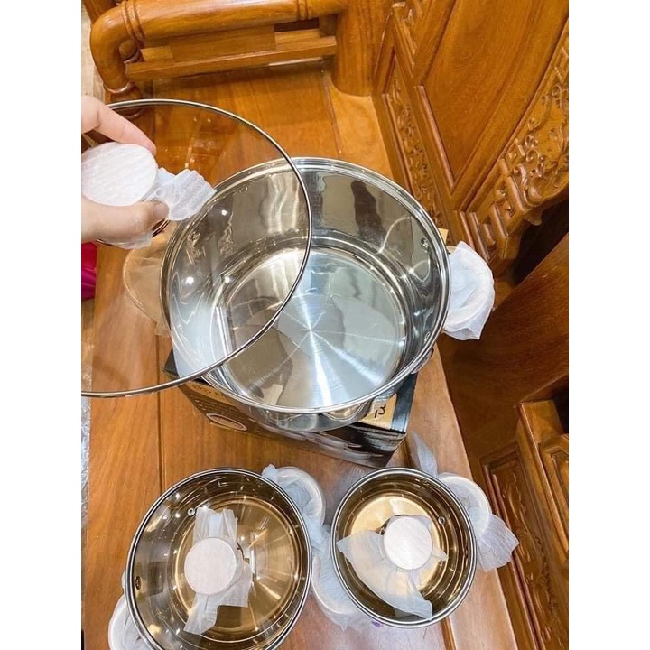 😊Bộ nồi 3 chiếc chất liệu inox 430 cao cấp, an toàn cho sức khỏe, bắt nhiệt nhanh, tiết kiệm thời gian đun nấu, sử dụng được trên mọi loại bếp, kể cả bếp từ.