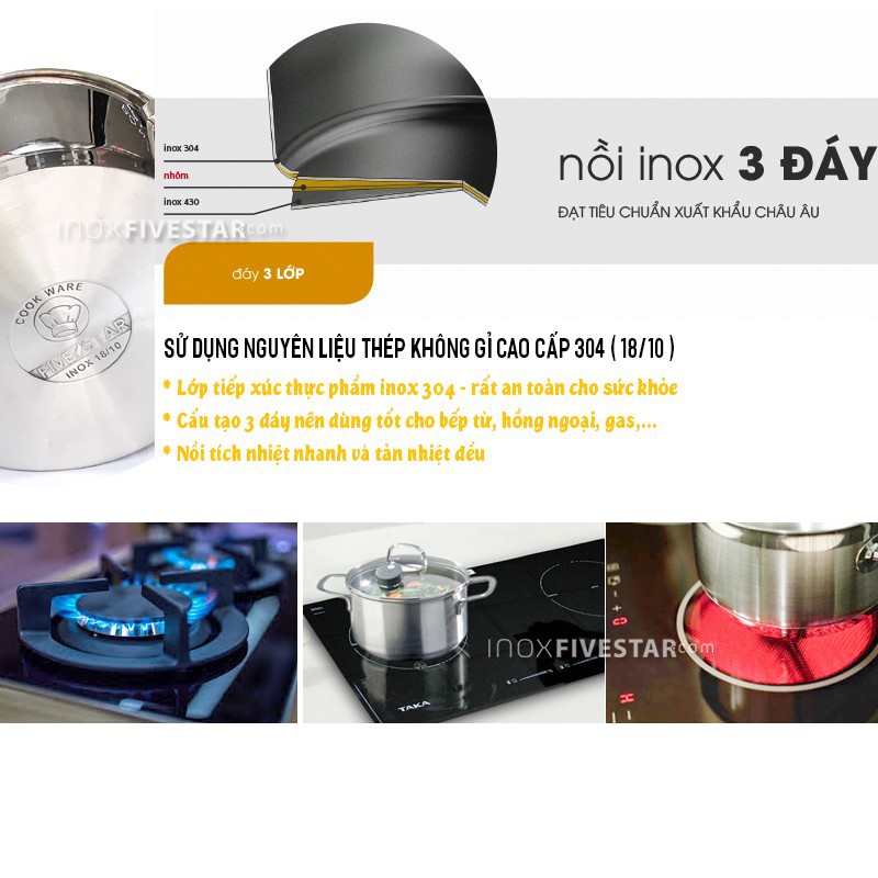 Nồi Inox 304 Fivestar 16-18-20-24CM ( inox 304 tốt cho sức khỏe)