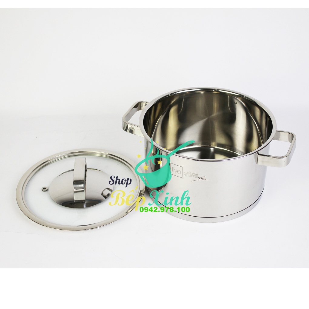 Nồi inox 304 Fivestar 3 đáy quai vuông nắp kính,dùng được bếp từ ,tặng 5 muỗng (16cm / 18cm / 20cm / 24cm )