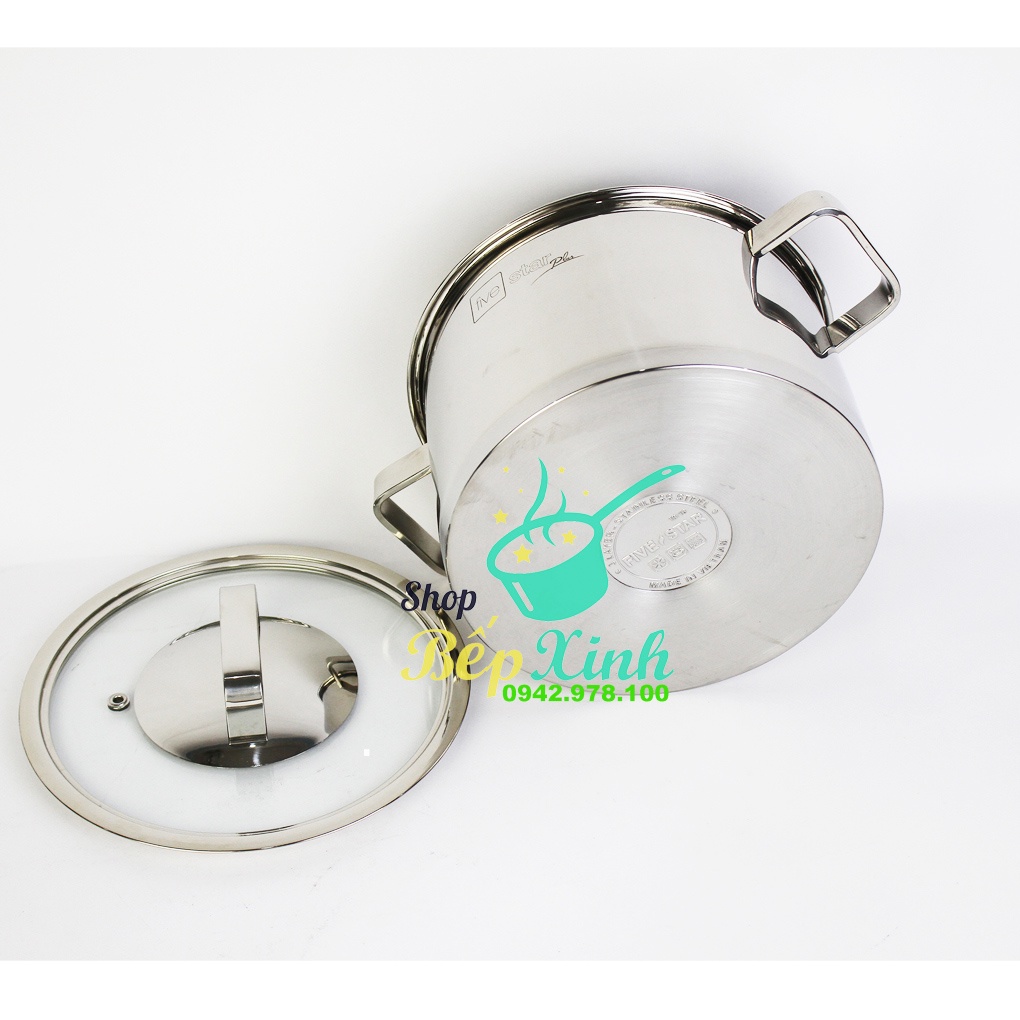 #nồiinoxNồi thân cao #3đáy inox 304 Fivestar Plus bếp từ quai vuông nắp kính ( 16cm /18cm / 20cm / 24cm )