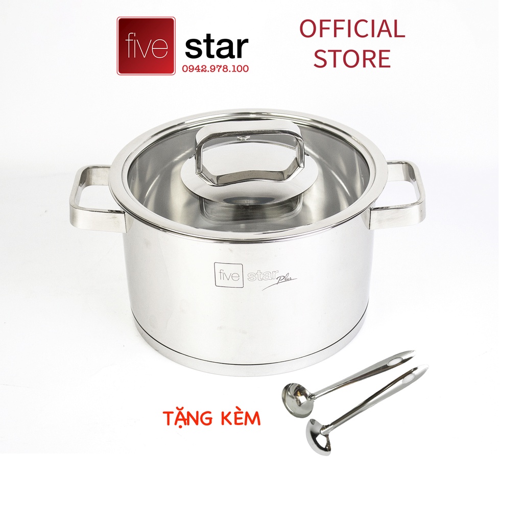 Nồi inox 304 Fivestar 3 đáy quai vuông 16cm / 20cm / 24cm nắp kính , tặng 2 vá canh