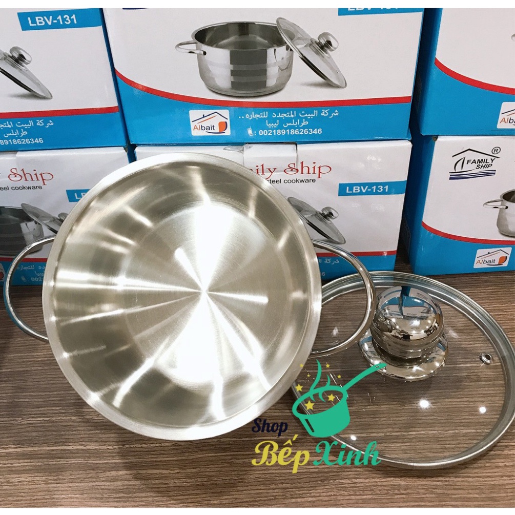 Nồi inox 304 Family Ship 3 đáy , siêu dày nắp kính 16cm / 18cm ( Hàng xuất khẩu )Nồi inox 304 Family Ship 3 đáy , siêu dày , quai oval , nắp kính 16cm / 18cm ( Hàng xuất khẩu )