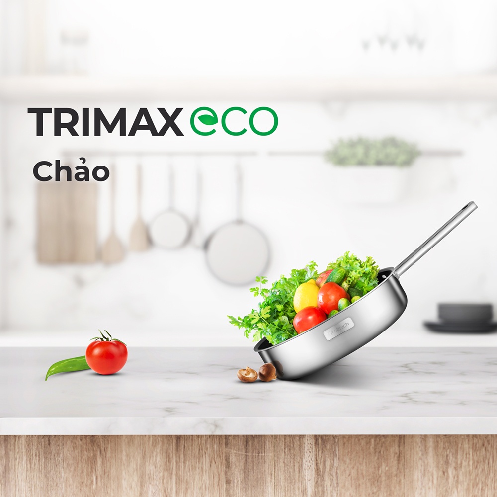 - Bảo toàn Vitamin và khoáng chất: Điểm ưu việt tạo nên sự khác biệt của Trimax ECO so với sản phẩm nồi chảo thông thường khác chính là khả năng bảo toàn vitamin và khoáng chất của thực phẩm khi nấu. Nhờ cấu tạo 3 lớp liền thân, Trimax ECO truyền nhiệt đều, giữ nhiệt lâu từ đáy và thành, tạo hiệu ứng ủ nhiệt 3D giúp đồ ăn chín mềm, ngon hơn và hạn chế thất thoát vitamin.