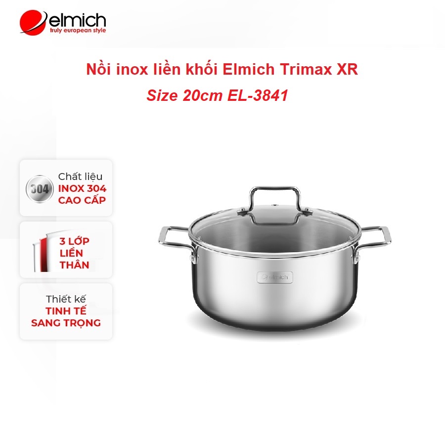 Nhà cửa & Đời sống > Dụng cụ nhà bếp > Nồi || Nồi inox 304 liền khối vung kính đáy từ Elmich Trimax XR EL-3841 đường kính miệng 20cm dung tích 2.8 lítCòn hàng