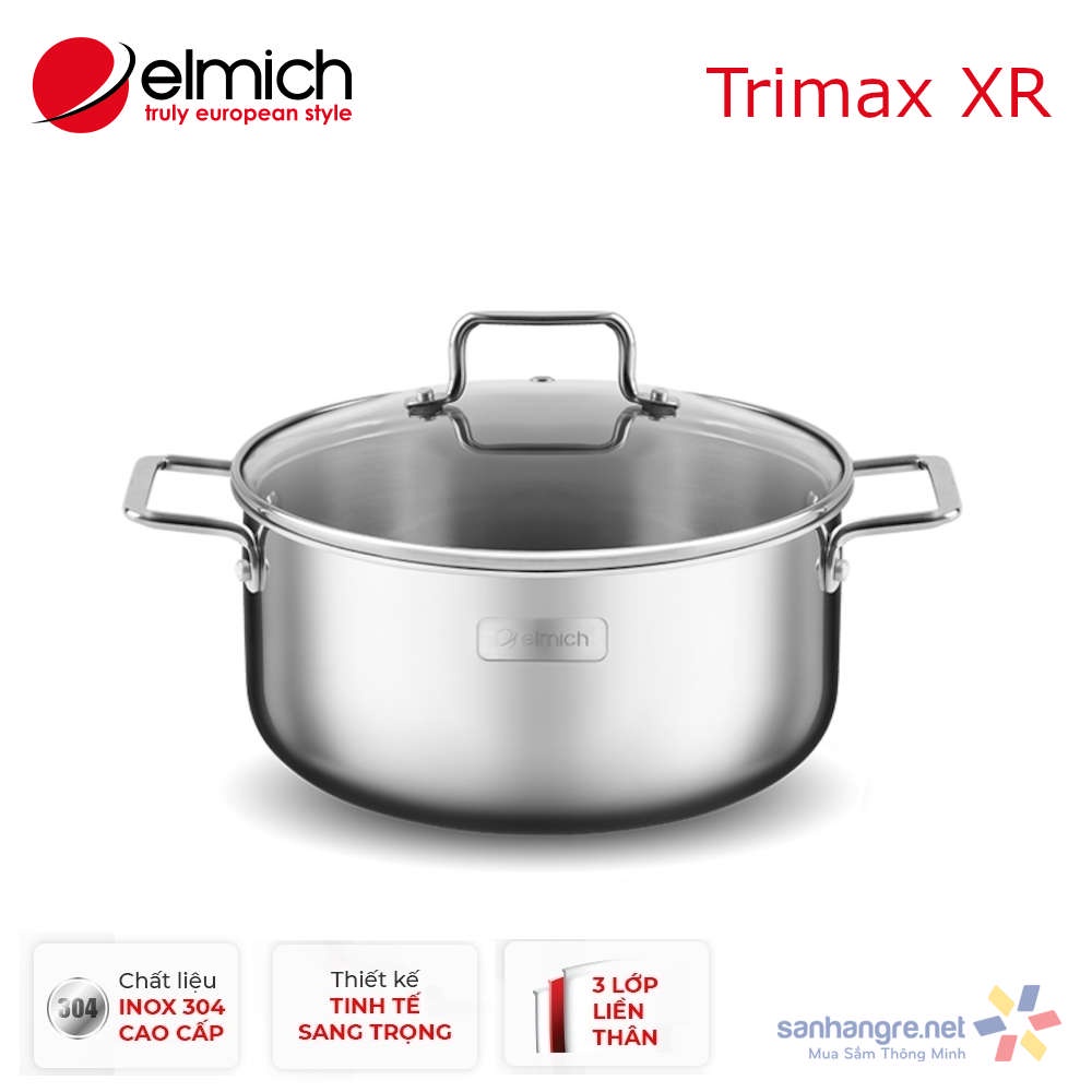 Giới thiệu Nồi inox 304 liền khối vung kính đáy từ Elmich Trimax XR EL-3841 đường kính miệng 20cm dung tích 2.8 lít