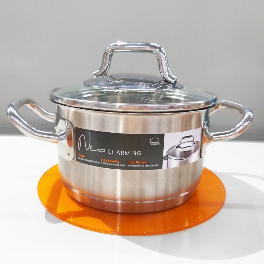 - Với dòng nồi Inox 304 cao cấp Lock&lock Neo Charming các mẹ hoàn toàn có thể yên tâm nấu nướng, góp phần làm sang trọng không gian bếp gia đình bạn và bền đẹp cũng thời gian