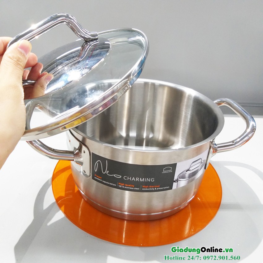 - Với dòng nồi Inox 304 cao cấp Lock&lock Neo Charming các mẹ hoàn toàn có thể yên tâm nấu nướng, góp phần làm sang trọng không gian bếp gia đình bạn và bền đẹp cũng thời gian